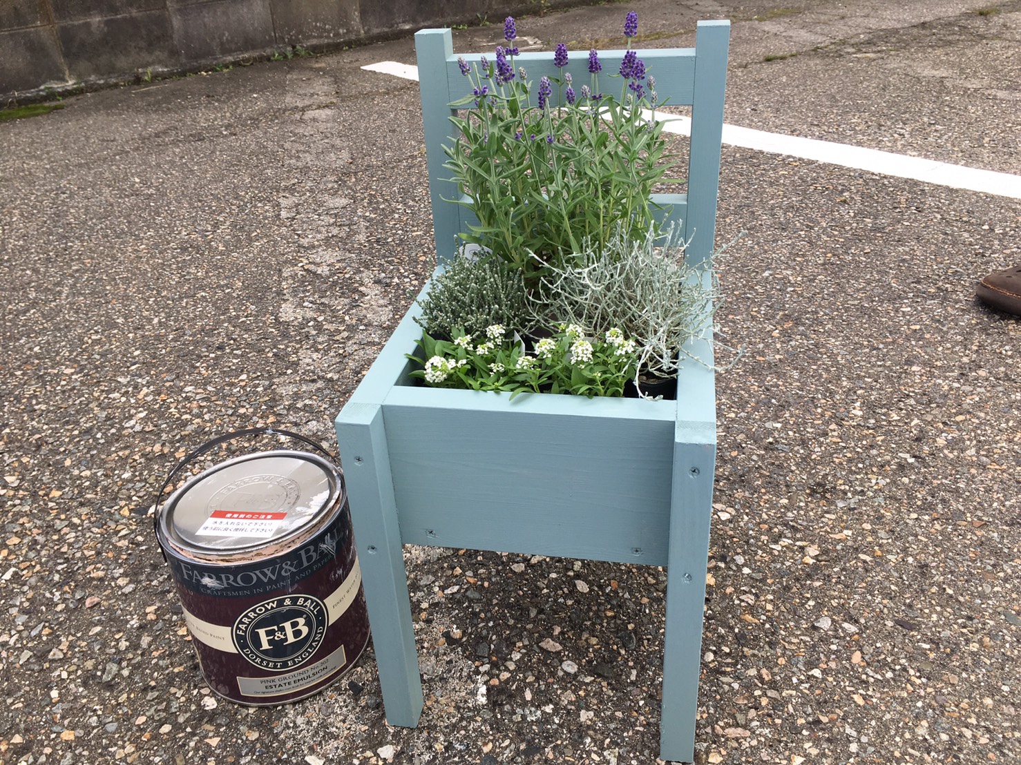 今回もまたまた弊社自慢の職人さんチーム『T・G・V』の皆さまのご協力もあり、オシャレなプランターを造ることができました!(椅子みたいでしょ?)