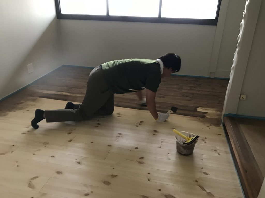 先日、社員でリノベーション物件の床塗装を行いました。