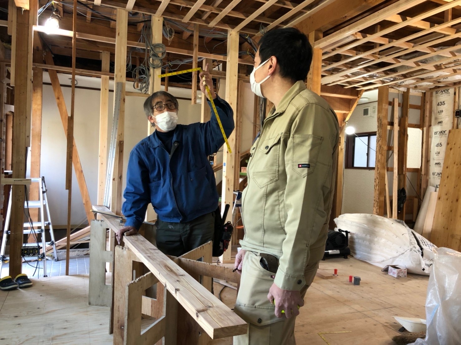 リノベーション工事では、職人さんとの打ち合わせも多く行いながら工事の方を進めています。