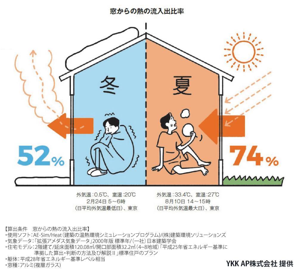 外の温度を家の中に伝えてしまう窓サッシの熱の伝わりやすさが大きな原因なのです。