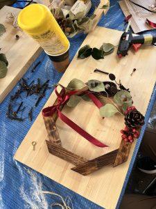 飾りになる材料はこちらで用意させていただき、リース作りからしていただきました。
