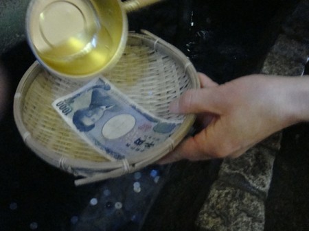私は千円札を洗いましたが、泉さんは一万円札を洗っていました。