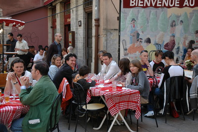 会場が一つの街角で、ヤマダタッケンと言う町の地域のみなさん。