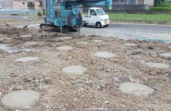 これは、地盤を補強して建物をしっかり支えられるようにする工事です。