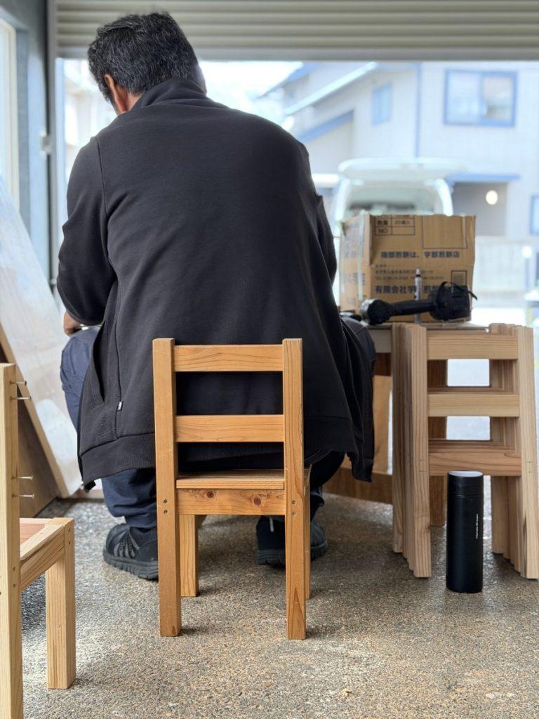 この日は監督の五十嵐さんがキッズチェアの下準備中でした。