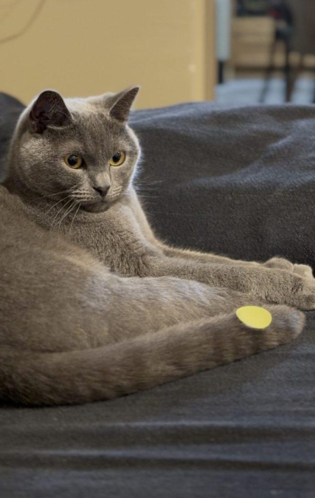 息子にシールを貼られるどん。このあと2枚追加されていました笑