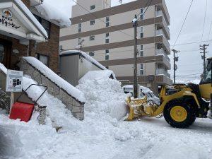 人力ではなかなか大変でしたので、重機のパワーをお借りして何とか除雪できました。