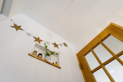 キッチンの小窓から、子供たちが勉強している様子を見ることが出来ます