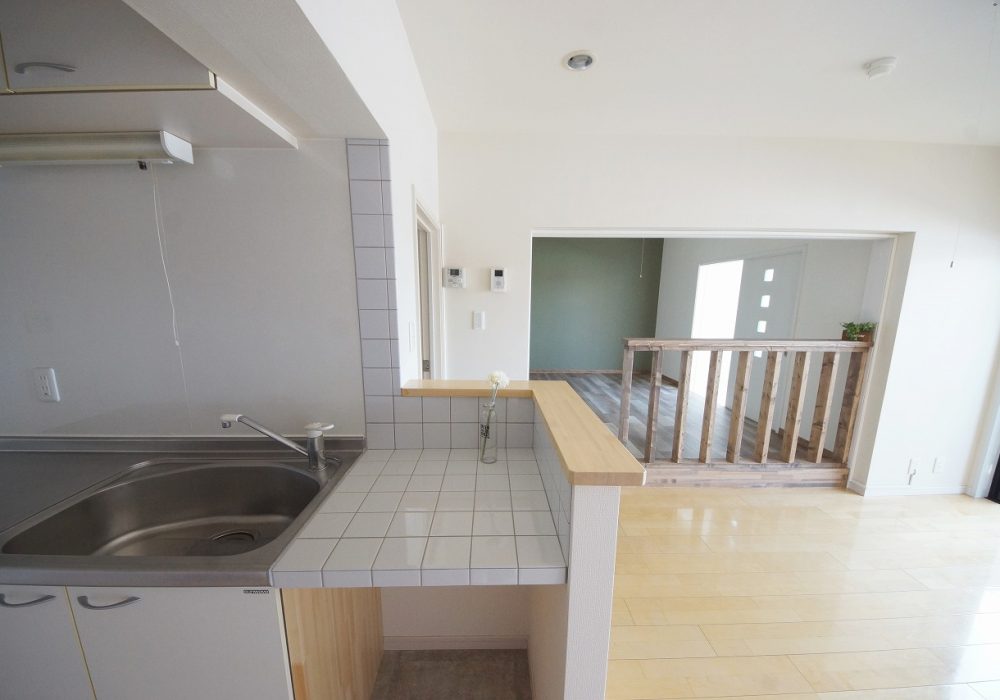 2.対面キッチン希望の入居者様が多いこともあり、既存の壁を無くしてキッチンのカウンターを延長し、対面キッチン風に!