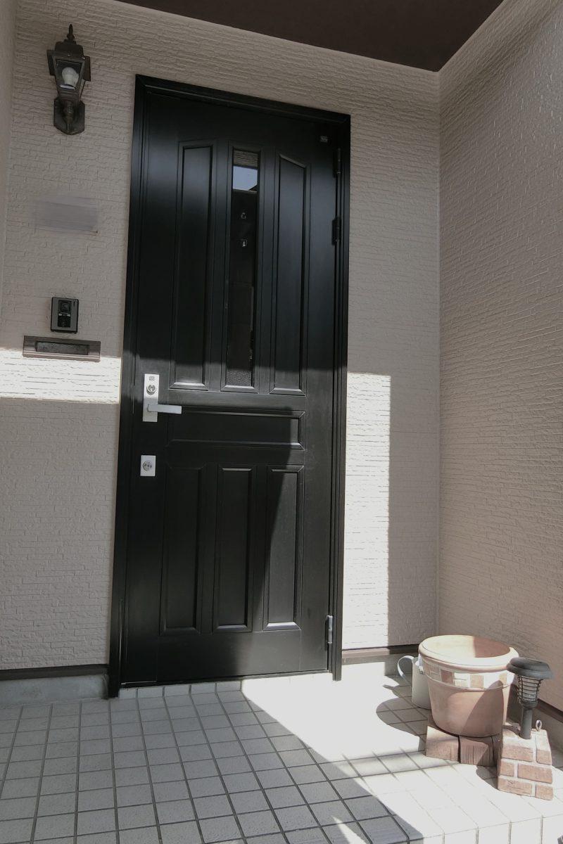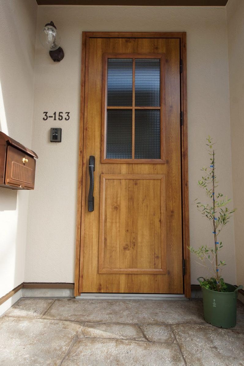 玄関ドアは、黒色のドアから木目調の玄関ドアへ変更しました。
